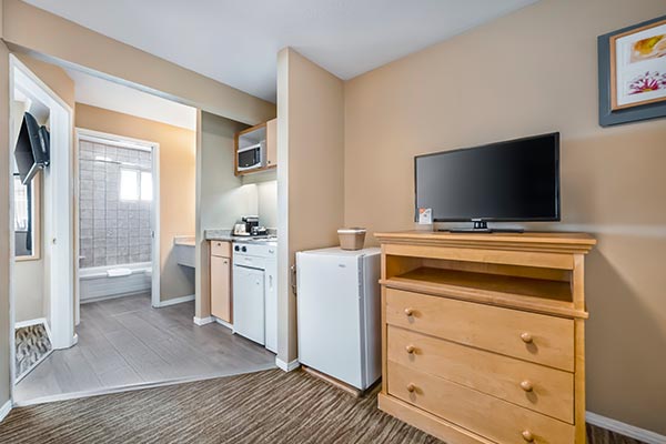 After an extensive All of our rooms and suites are freshly updated and stocked with home-like amenities. From kitchenettes to free Wi-Fi, you can do more from the comfort of your room. Enjoy high-definition entertainment on 32” flatscreen TVs, brew a fresh cup of java on the in-room coffeemaker or whip up a meal in the microwave: it’s all yours to enjoy with affordable and convenient