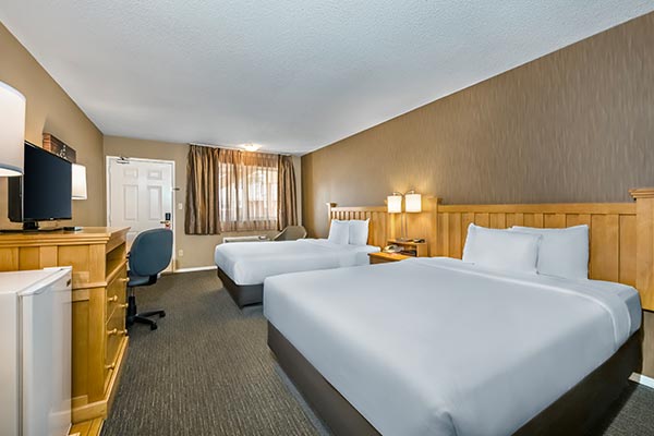 Our Superior Rooms are the perfect blend of style and affordability. The rooms feature two Queen size beds that can sleep up to four in comfort, a mini fridge and a Samsung HD flatscreen 32” TV. You may request with a kitchen for an additional charge (depending on availability).